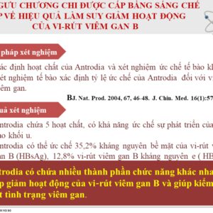 Có bằng sáng chế của Mỹ và Đức về ức chế virut viêm gan B, chống viêm, chống ung bướu.